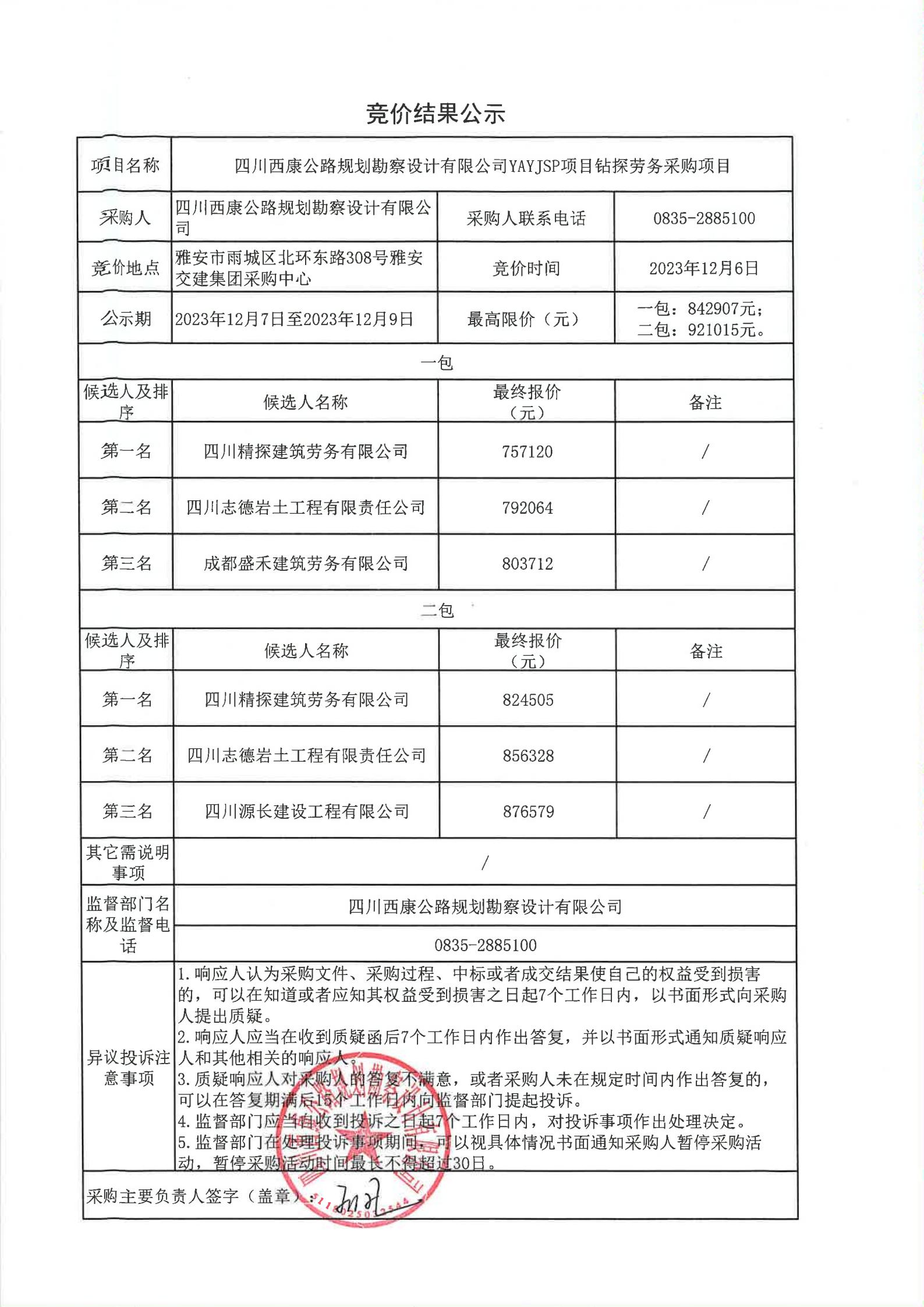 四川西康公路規(guī)劃勘察設計公司YAYJSP項目鉆探勞務采購項目競價結(jié)果公示
