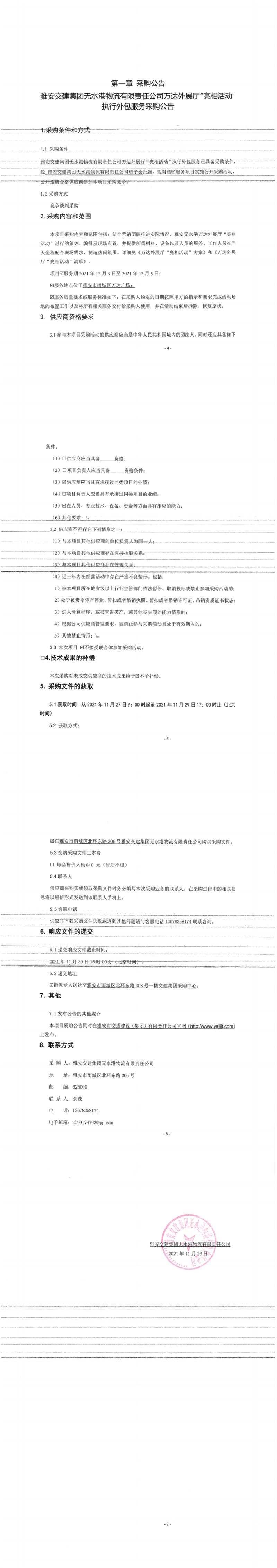 雅安交建集團無水港物流有限責任公司萬達外展廳“亮相活動”執(zhí)行外包服務采購公告