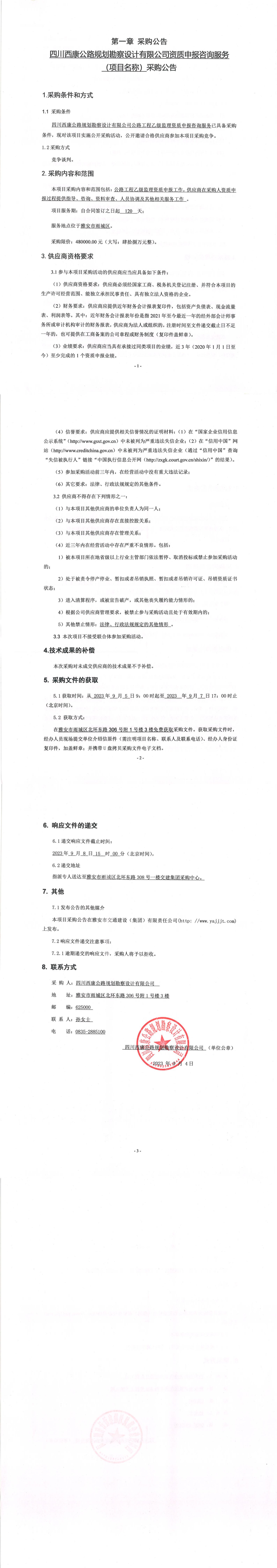 四川西康公路規(guī)劃勘察設(shè)計(jì)有限公司資質(zhì)申報(bào)咨詢服務(wù)(項(xiàng)目名稱)采購(gòu)公告
