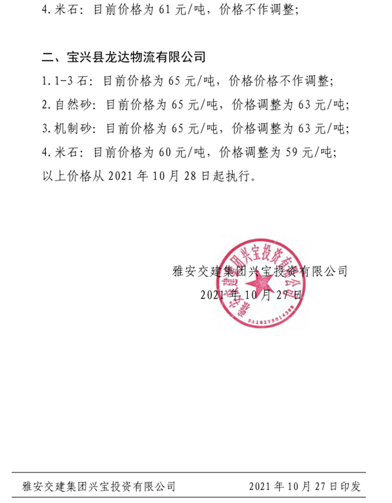 ÑŰ²½»½¨¼¯ˆFÔÆÊ¯¹«Ë¾êP(gu¨¡n)ÓÚÕ{(di¨¤o)Õû³ÉÆ·ÁÏäNÊÛƒr¸ñµÄ֪ͨ£¨2021.11.4£©