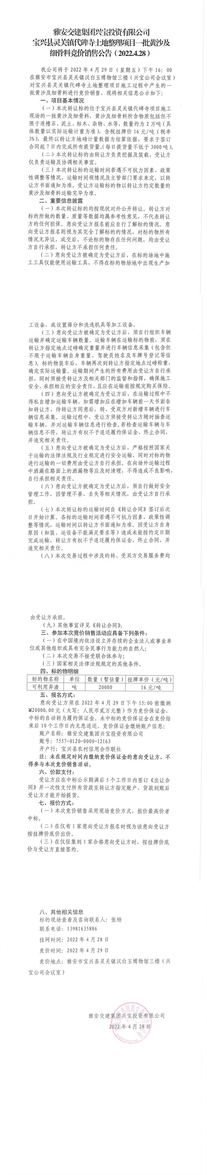 ÑŰ²½»½¨¼¯ˆFÅdŒšÍ¶ÙYÓÐÏÞ¹«Ë¾ŒšÅd¿hì`êPæ‚(zh¨¨n)´ú±®ËÂÍÁµØÕûÀíí—ĿһÅúüSɳ¼°¼š¹ÇÁϸ‚ƒräNÊÛ¹«¸æ£¨2022.4.28£©